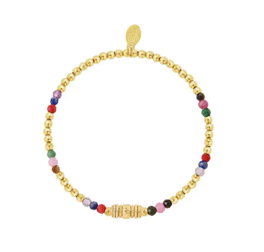 Van deze armband met meerdere kleuren word je meteen blij! De armband is super leuk te combineren met meerdere armbanden en kleurrijke sieraden voor een stoere look. Erg leuk om dit armbandje te dragen tijdens een festival of geweldig feest! De armband is gemaakt van roestvrij staal in combinatie met glaskralen. De lengte van de armband is 16,5 cm en is verstelbaar dankzij het elastiek.