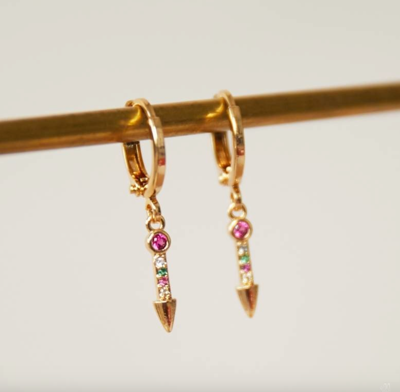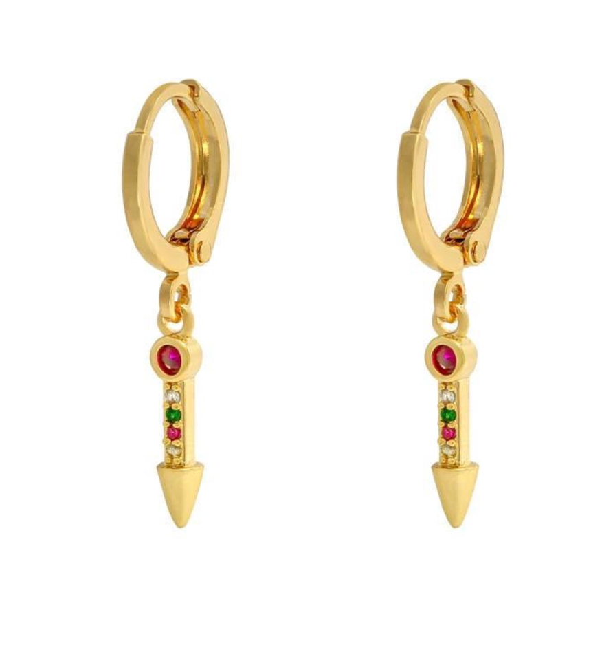 Soms heb je van die oorbellen waarvan je direct weet dit is een musthave! Deze oorbellen shinen en zijn echte juwelen. De basis van de oorbel is een klein ringetje. Daaraan vast hangt een langwerpige bedel in de vorm van een pijl. In de pijl zitten mooie zirkonia stenen. Zirkonia stenen zijn de stenen zijn imitatiediamanten. Deze steen is moeilijk van echte diamanten te onderscheiden en komt dichterbij de diamant dan andere imitatiediamanten.