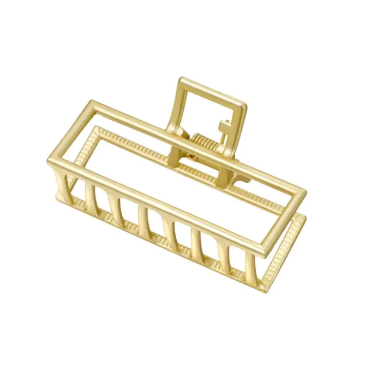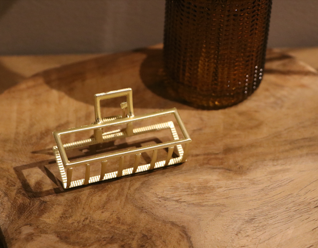 Rechthoekige metalen haarclip in goudkleur.