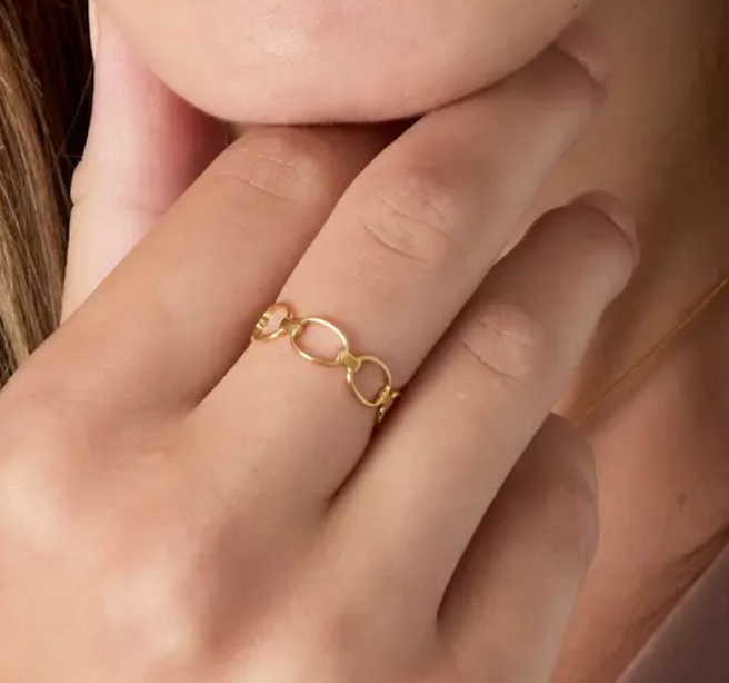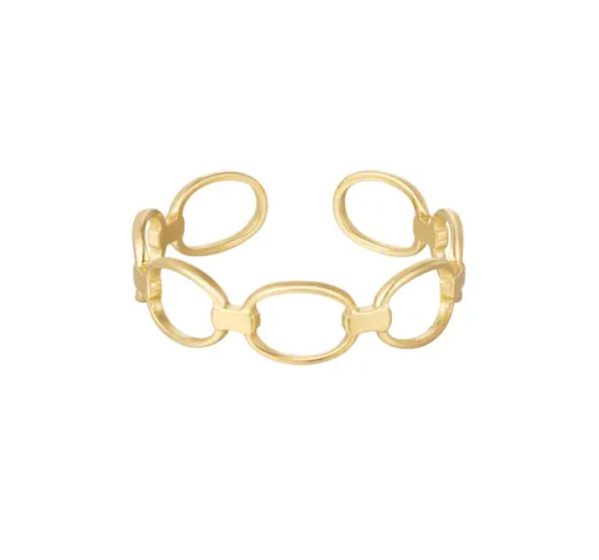 Hoe tof is deze gouden eye-catcher ring met leuke schakels! Zo leuk om deze ring met meerdere sieraden met schakel details te combineren! De ring is gemaakt van stainless steel en is one size. Doordat de ring one size is, kun je de ring perfect naar jouw vinger vormen.