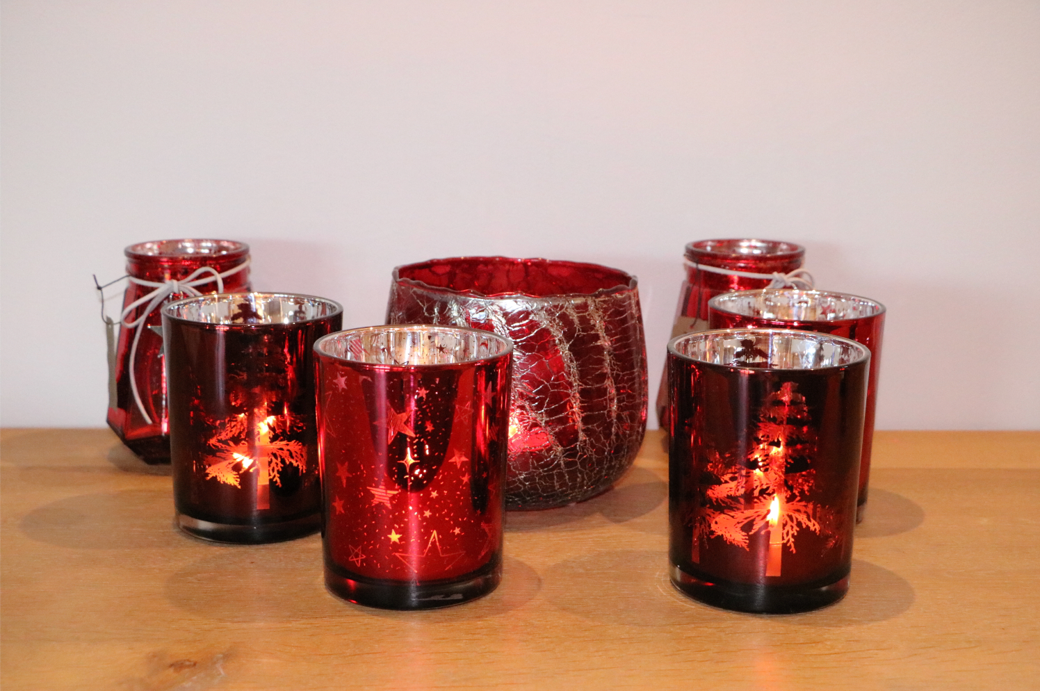 Windlicht Rood met Bomen